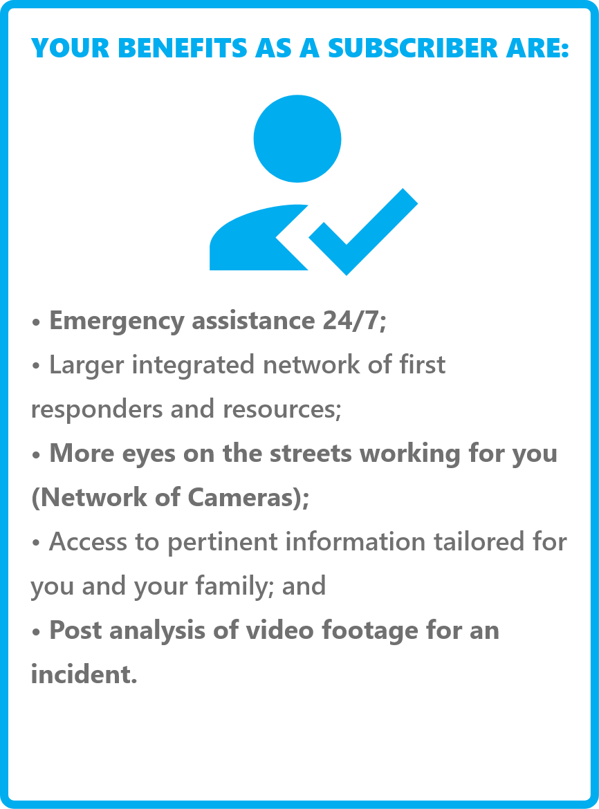 Subscribe today to a home and business option, contributing to a network of cameras, monitored 24/7 all the while helping those ready to help you and your community.